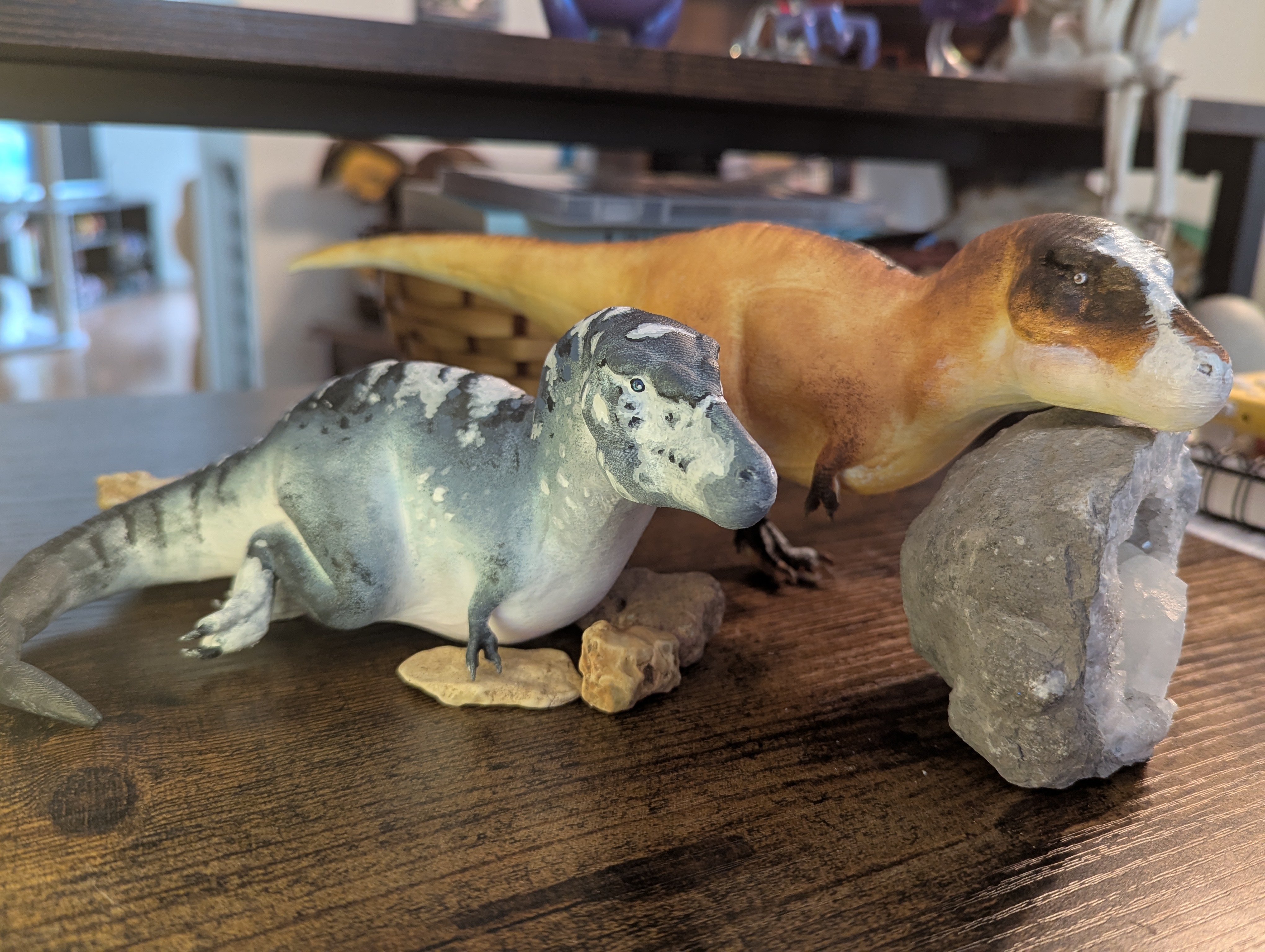 When creating the sister project for this study, the second step was to pose and paint the dinosaur figurines using this theory: